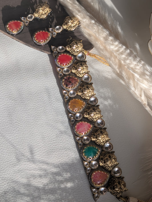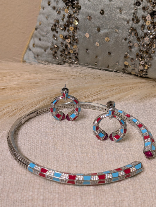Winter Pastel Designer Inspired Gem Stone Necklace Set