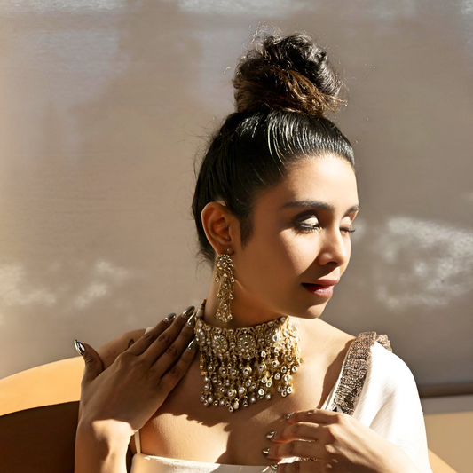 Ahilya Kundan Dangler Gold Tone Choker Set