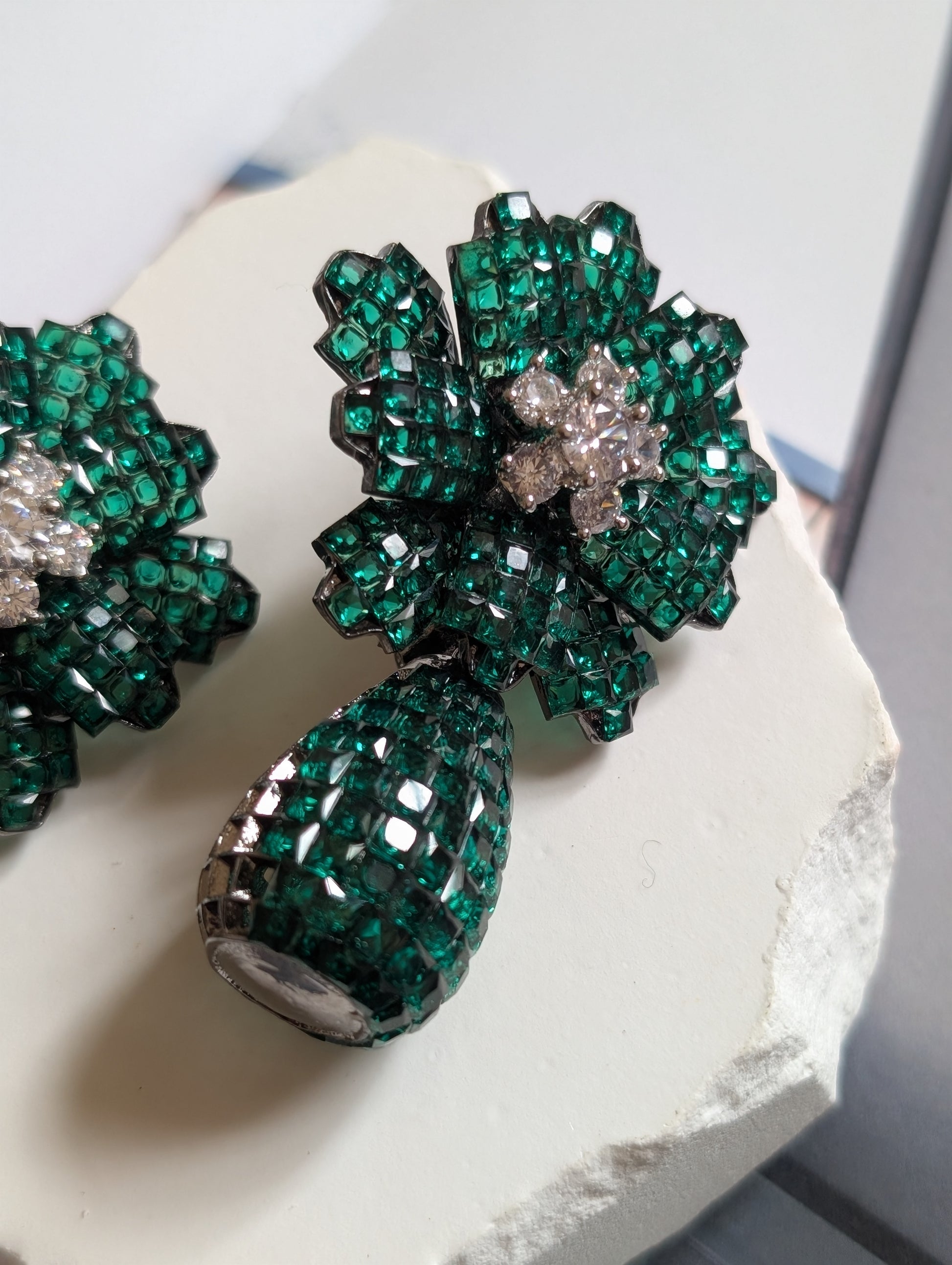 Dramatic yet refined, the Zahira Garnet Bloom Earrings are designed to turn heads. Crafted in a blooming silhouette using deep garnet stones and silver accents, the floral upper blooms into a drop of fine meshwork and sparkle. These earrings make a bold companion to both evening wear and festive couture, blooming beautifully wherever they're worn.
